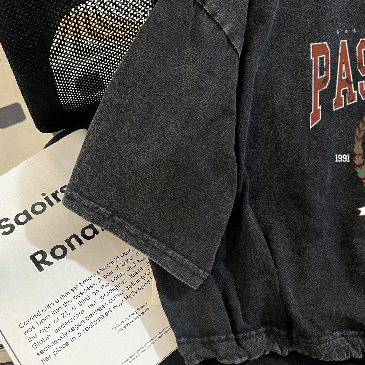 A Distressed Vibe Top é a camiseta que já nasce com a história de uma peça amada. Feita de algodão puro, ela traz a maciez e a leveza que você precisa, com um visual lavado e desgastado que lhe confere um charme vintage e autêntico. O corte solto e cropped é perfeito para um look descontraído, enquanto o cordão ajustável na barra permite que você personalize a modelagem, criando o caimento ideal para a sua vibe.