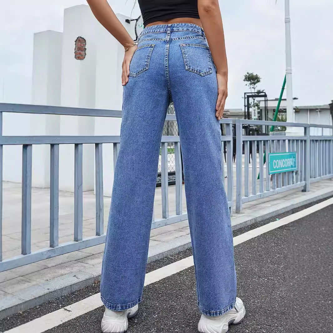 A Calça Jeans "Straight Love" é a peça perfeita para adicionar um charme sutil e personalizado ao seu visual casual. Ela apresenta o elegante corte reto (Straight), que garante um caimento atemporal e confortável. A silhueta é definida pela cintura alta (High Waist), que valoriza o corpo e proporciona uma base perfeita para combinar com tops curtos ou camisas por dentro.