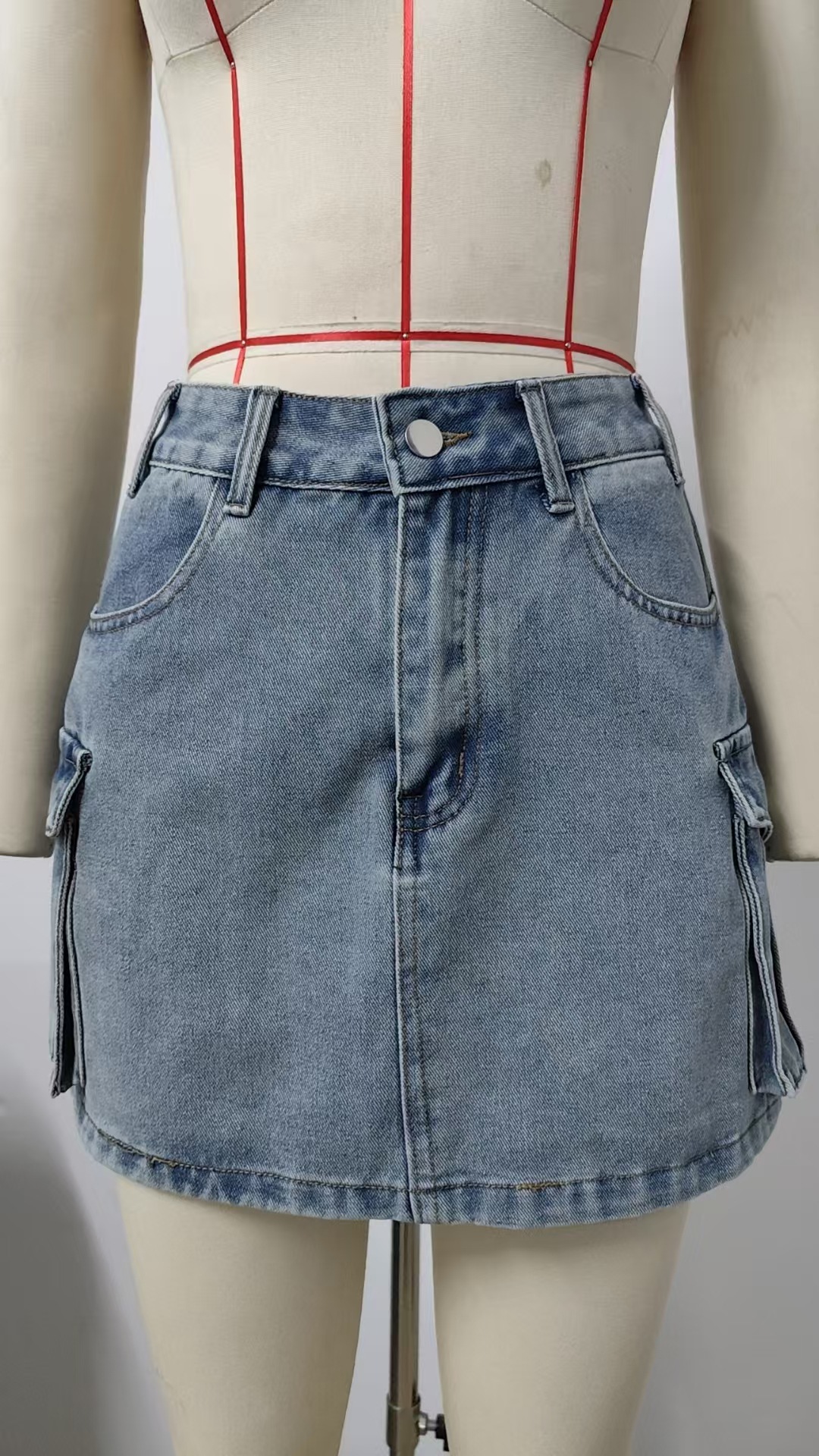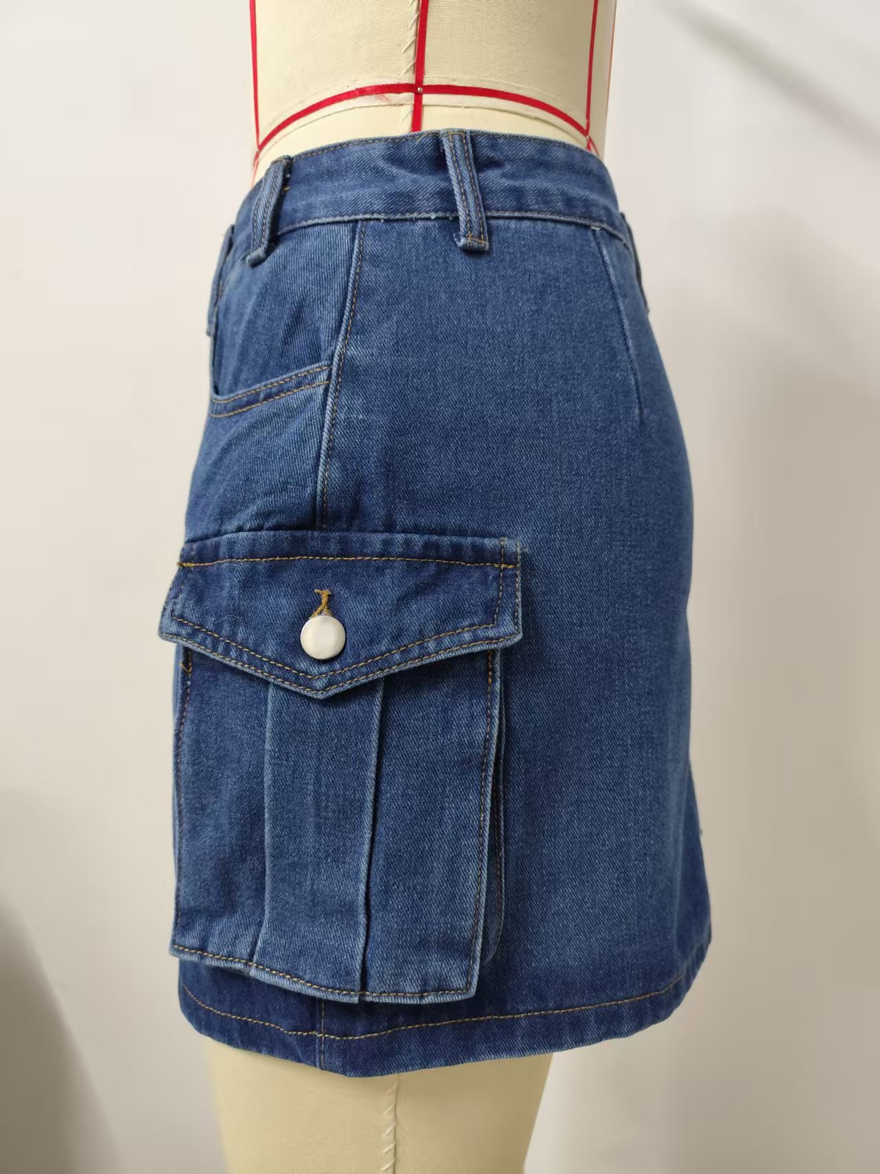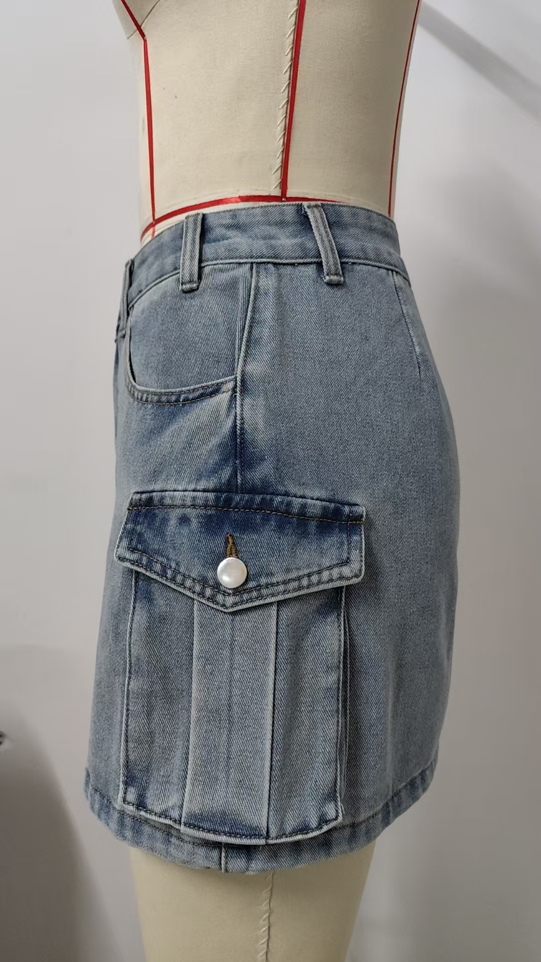 Women Summer Washed Retro Denim Cargo Pocket Short Skirt