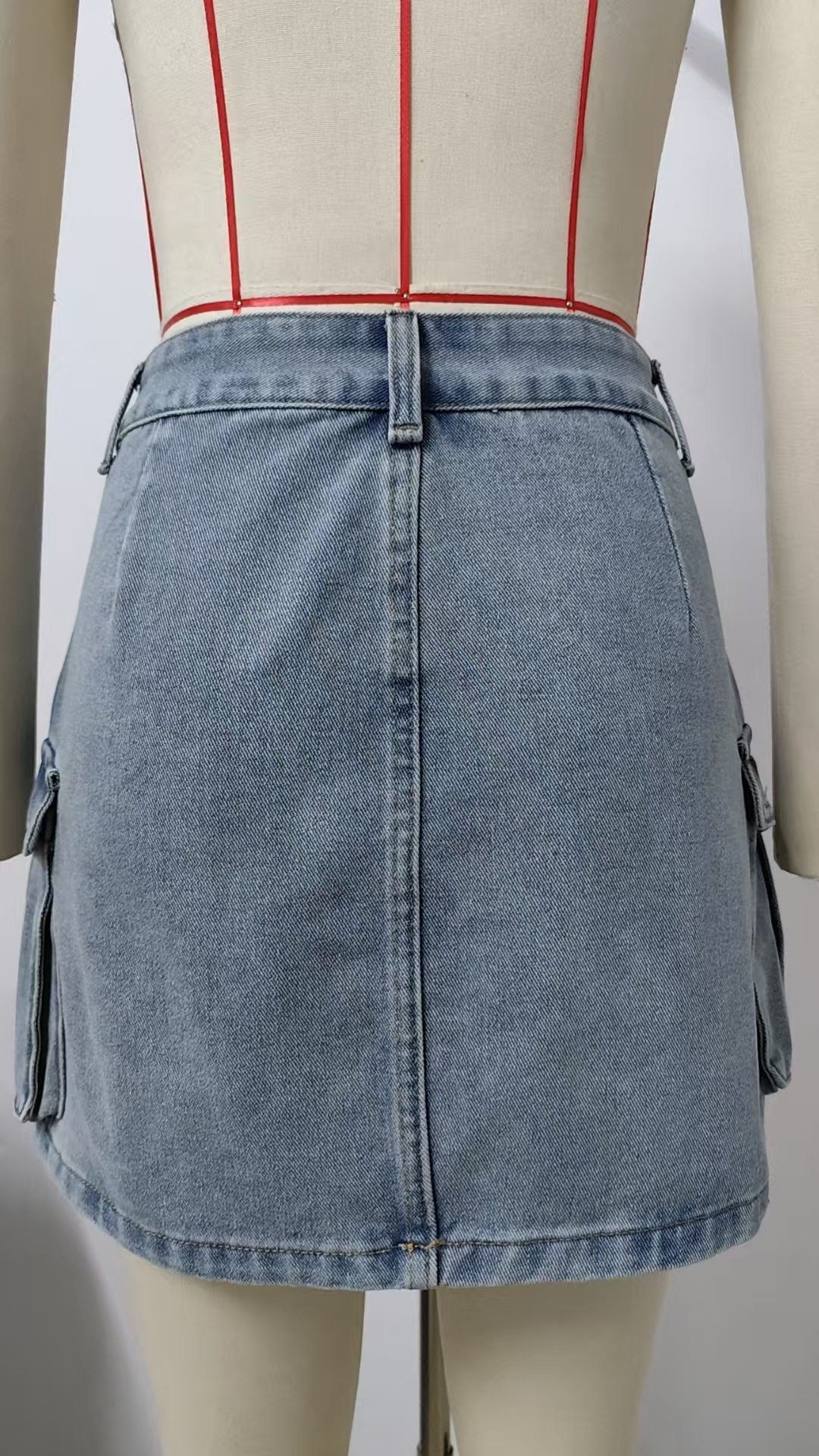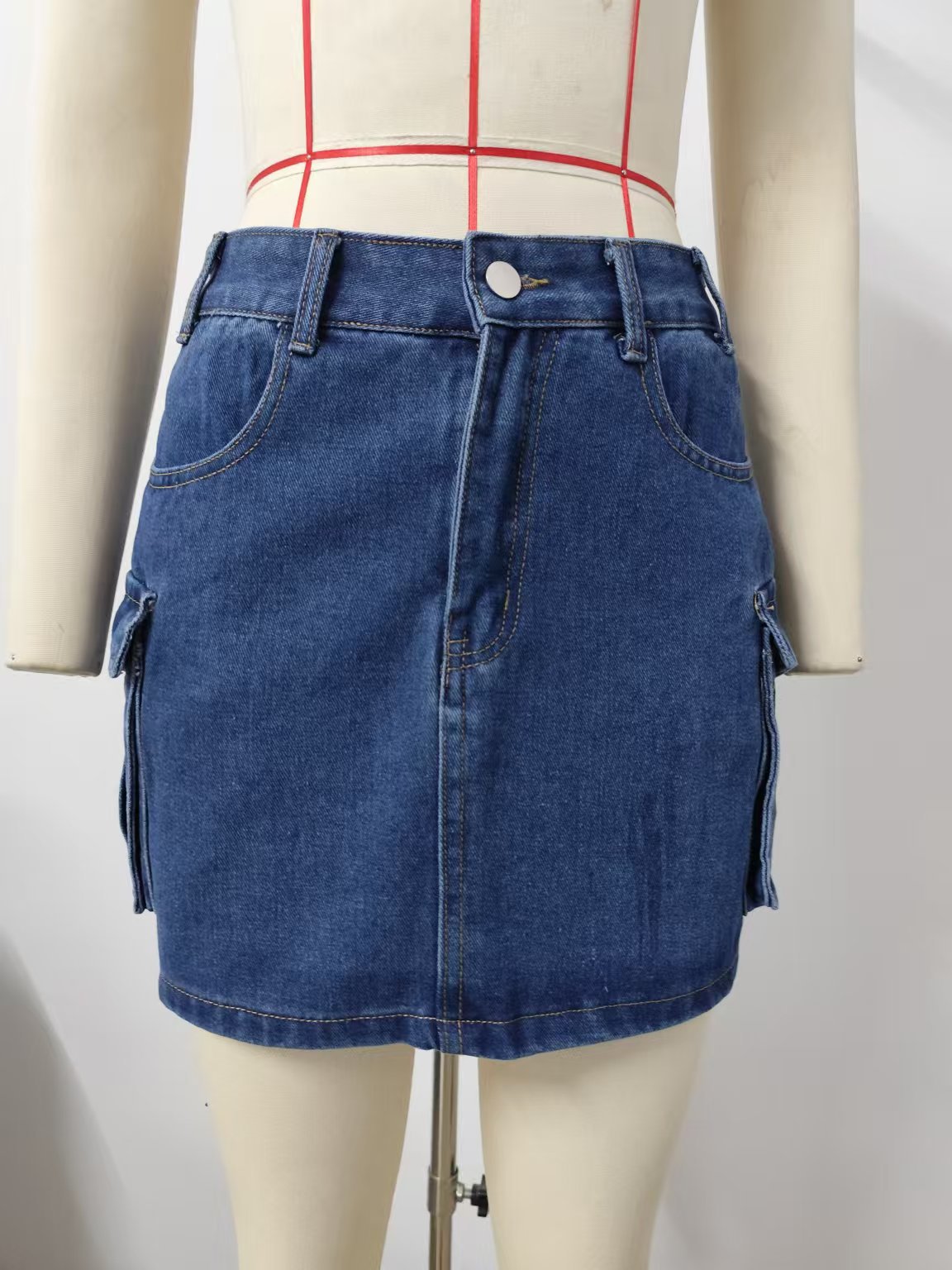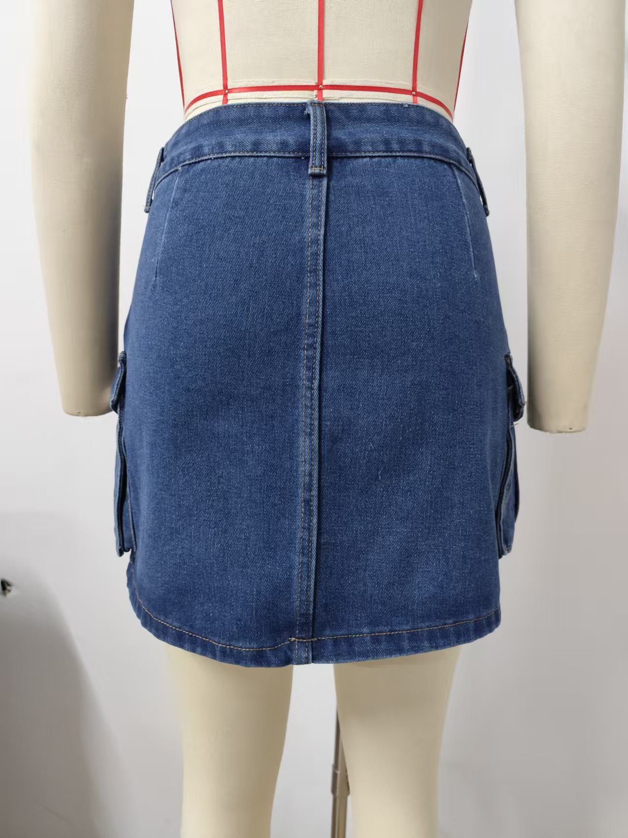 Women Summer Washed Retro Denim Cargo Pocket Short Skirt