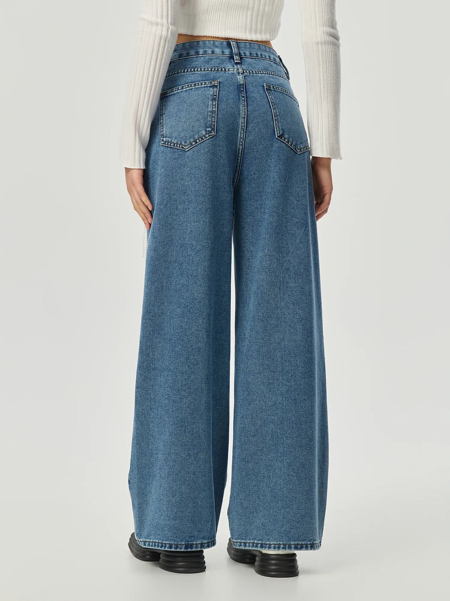 Design Wide Leg: Perna super ampla para um caimento moderno e confortável.