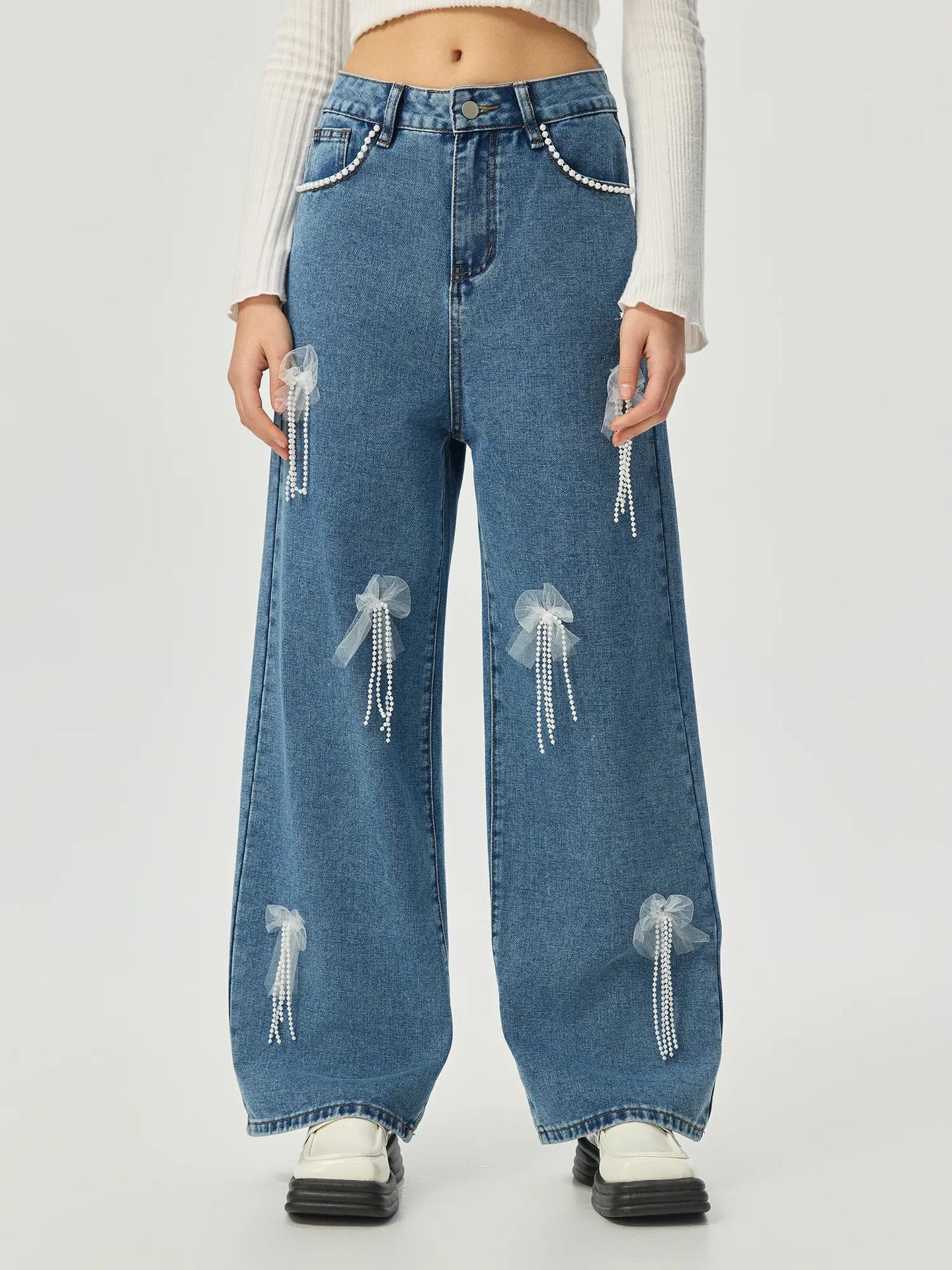 Confeccionada em denim de alta qualidade , esta calça apresenta uma lavagem moderna e um caimento solto que proporciona liberdade total de movimento, perfeita para o seu dia a dia e para momentos de lazer. O diferencial fica por conta dos delicados apliques e/ou bordados de borboletas estrategicamente posicionados, que adicionam um charme único, elevando o jeans casual a um item de declaração de moda.