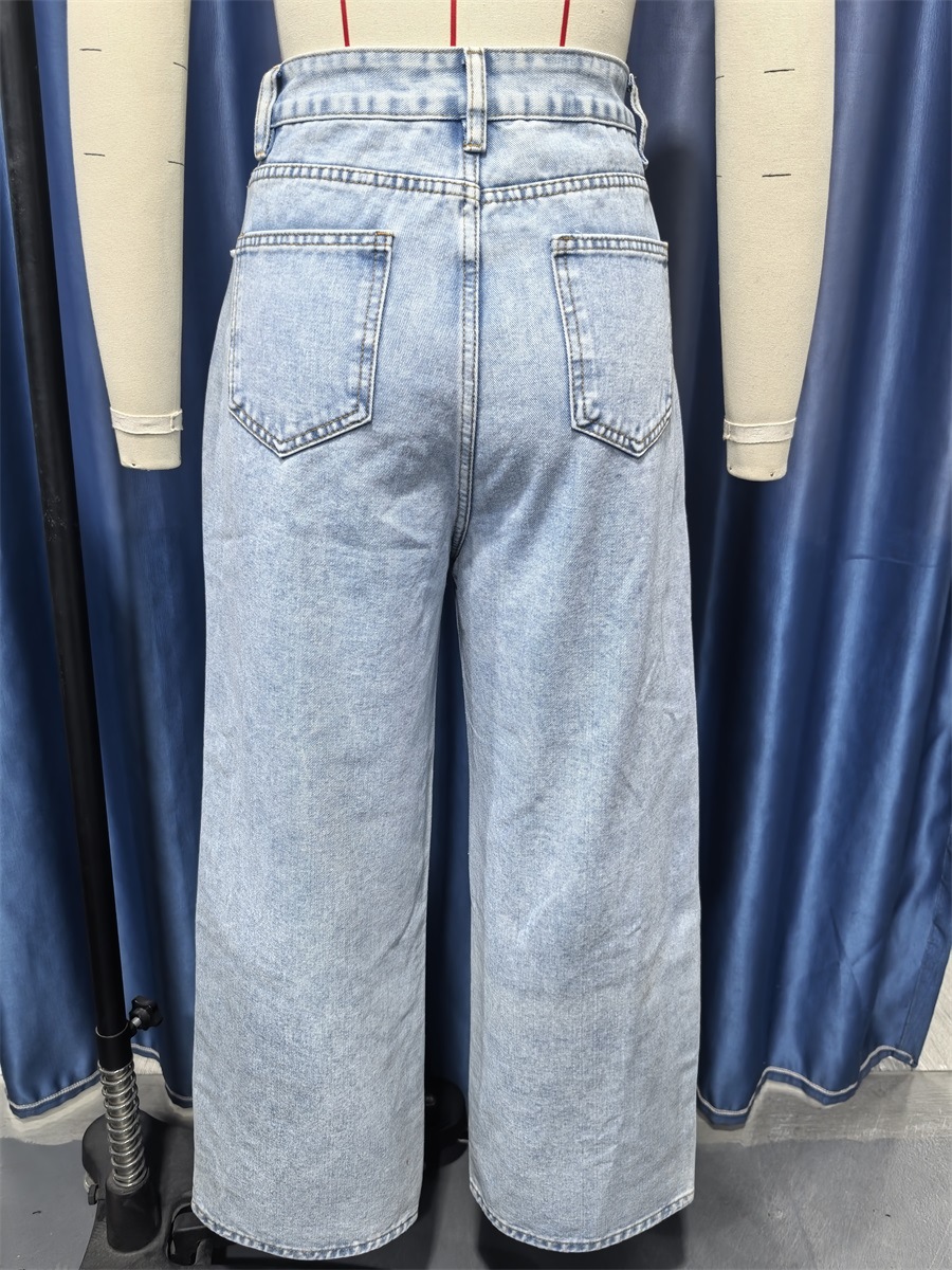 Entre no mundo da moda com a Calça Jeans "URBAN METAMORPHIC", uma peça-chave que combina o conforto sem esforço do corte Wide Leg com um toque de fantasia e estilo.